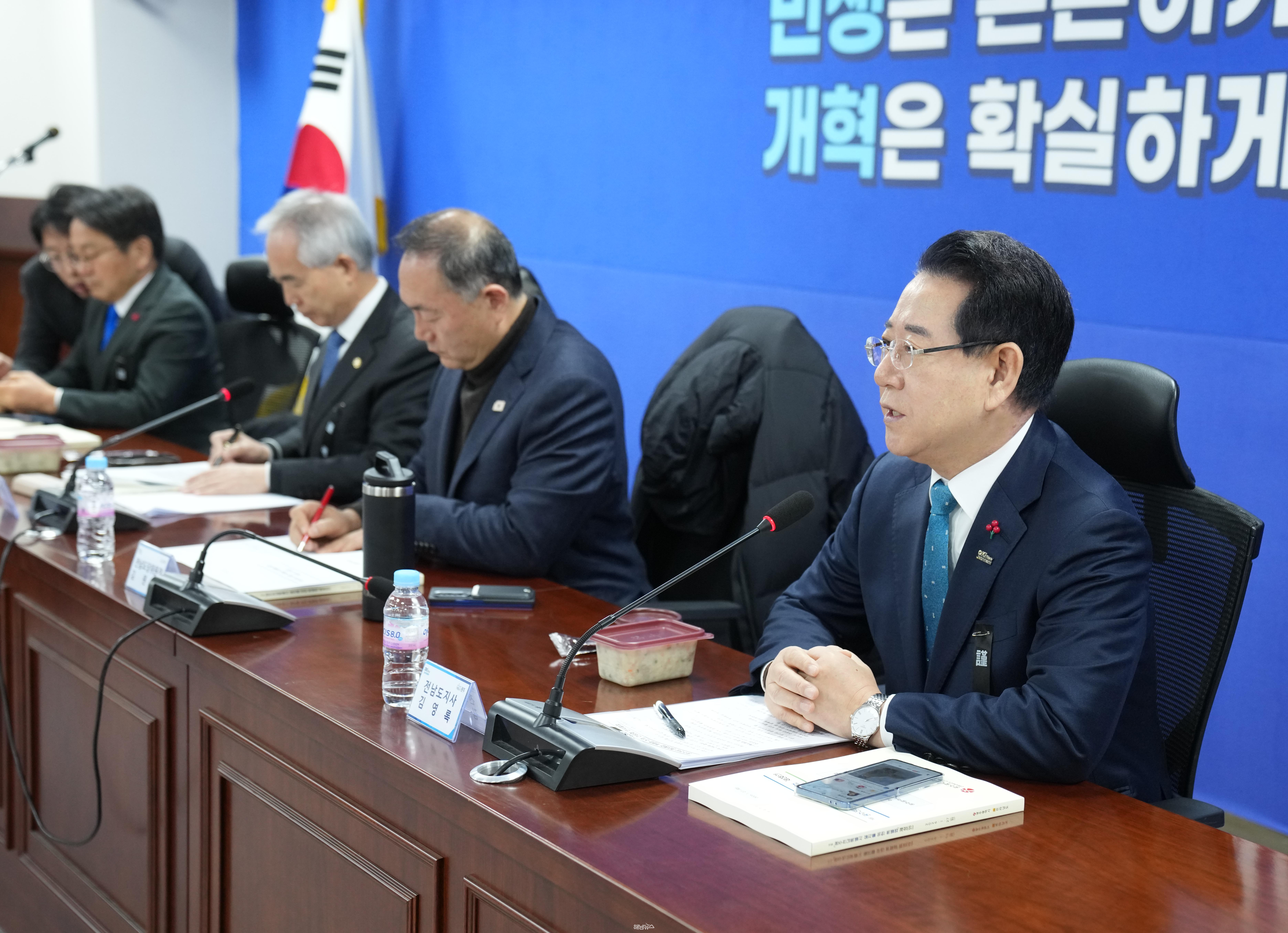 The meeting was attended by Governor Kim Young-rok of Jeollanam-do, Mayor Kang Ki-jung of Gwangju, senior provincial and metropolitan officials, Democratic Party Jeonnam Chair Kim Won-yi, Gwangju Chair Yang Bu-nam, and 18 lawmakers from the region, totaling more than 40 participants.