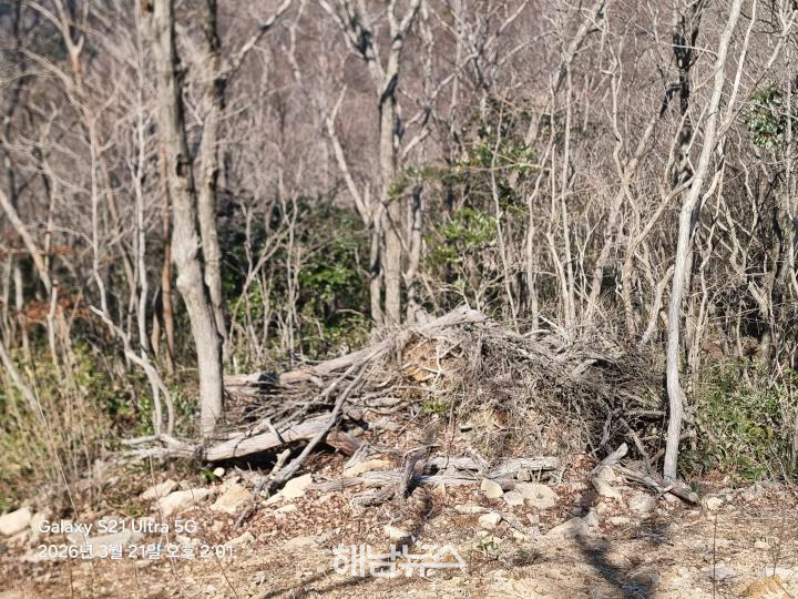 ![]() 임도 개설 후 방치된 잡목 / 사진제공=해남뉴스 |