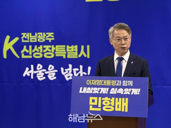 더불어민주당 전남광주통합특별시장 경선 후보인 민형배 국회의원(광주 광산구을)이 ‘출산·육아·생활 3대 책임 정책’을 전격 발표하며, 저출산 대응의 패러다임 전환을 선언했다.