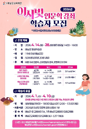 ![]() 해남 이사빛 인문학 강좌 학습자 모집 |